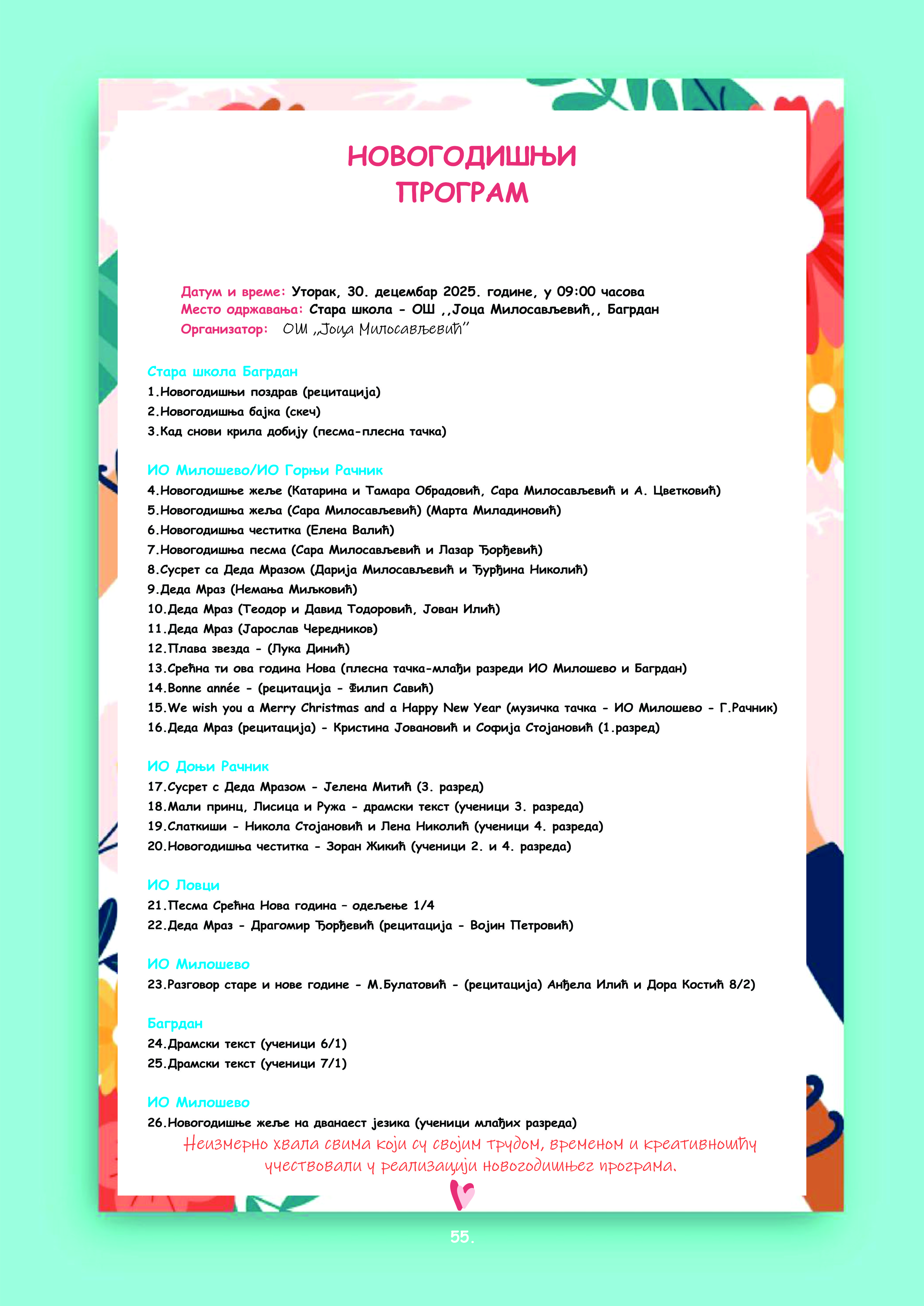 Извештај о раду школе 2024/2025. годинеДатум: 15. Septembar 2025 22:54 Категорија: НовостиИзвештај о раду школе 2024/2025. године Прочитај |
